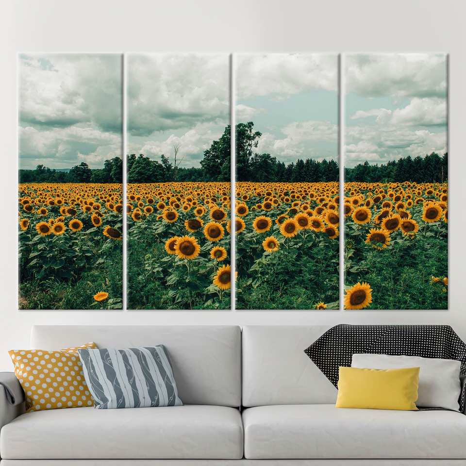 ภาพพิมพ์ทิวทัศน์ทุ่งทานตะวันสำหรับแขวนผนัง - งานศิลปะบนผ้าใบกรอบทอง,4P: ห่อหุ้มแบบแกลเลอรี