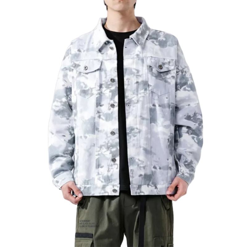 แจ็กเก็ตยีนส์สำหรับผู้ชายเสื้อแจ็กเก็ตยีนส์แนวสตรีทพิมพ์ลาย