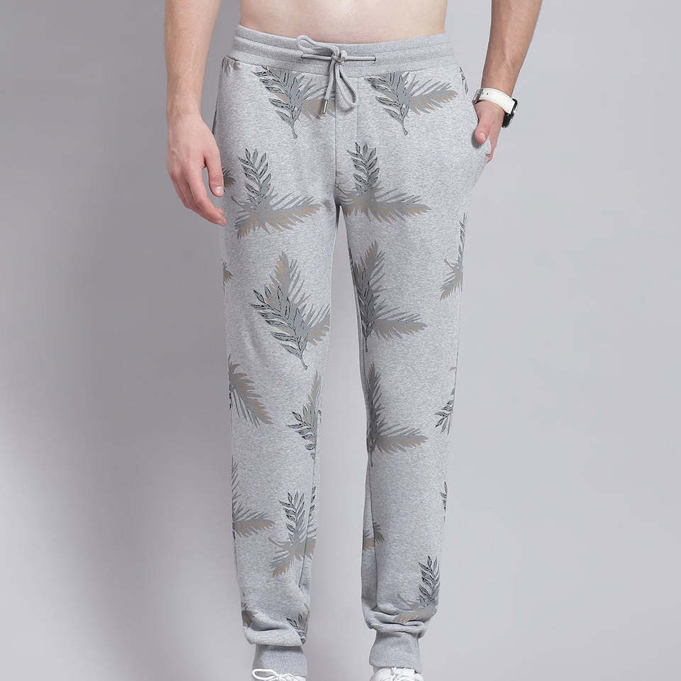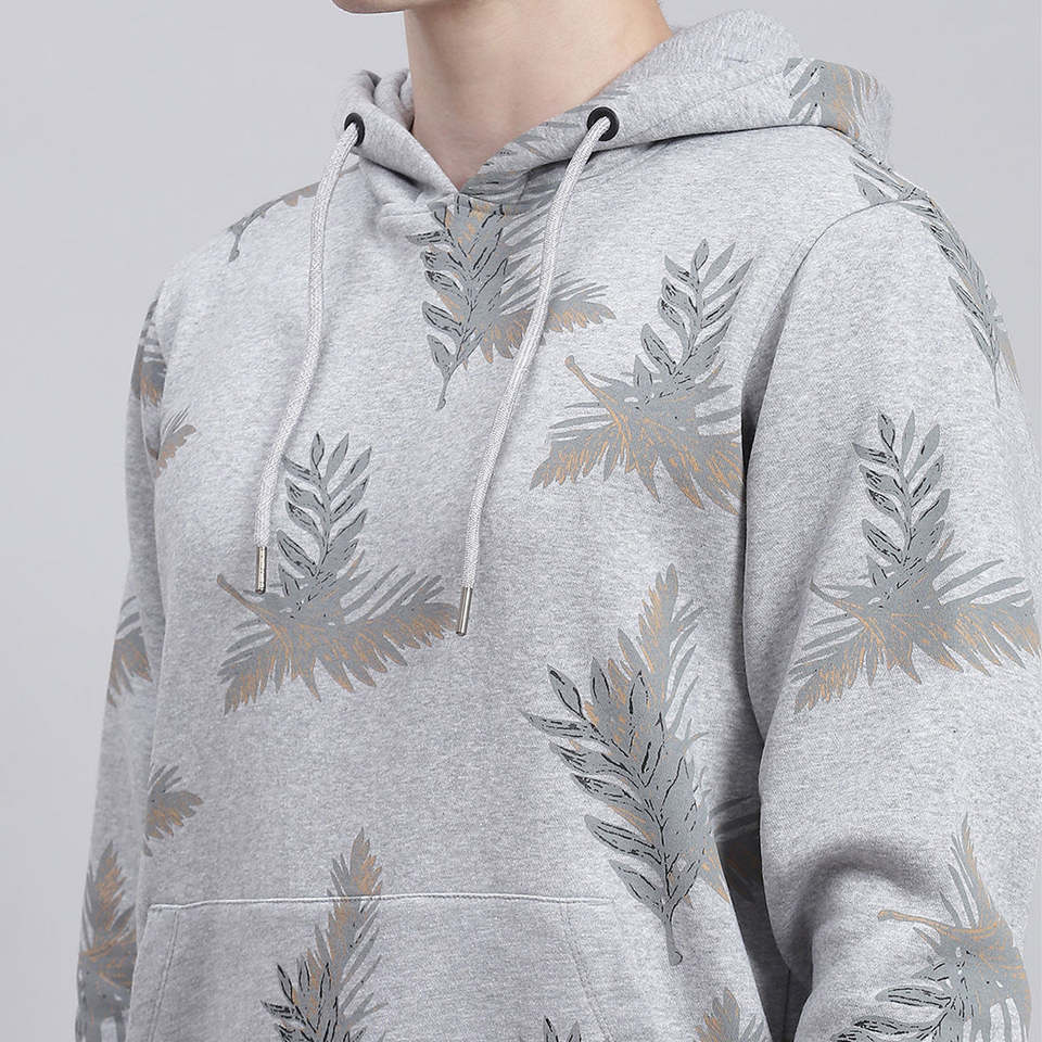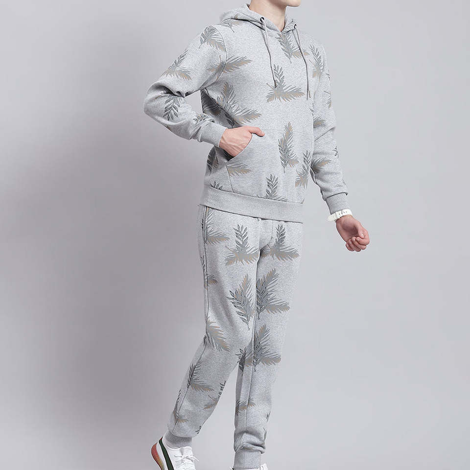 Printed Tracksuit Men Grey Palm Leaf Hoodie And Jogger Set Fleece Streetwear Winter Casual Sports Gym Comfort Outfit Sales