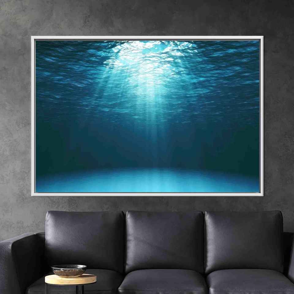 ภาพพิมพ์บนผ้าใบลายใต้น้ำ - ของตกแต่งผนังลายแสงแดดชายฝั่ง,1P:กรอบสีขาว