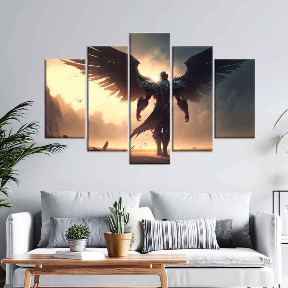 ภาพพิมพ์บนผ้าใบลายวอร์ริเออร์แองเจิล: ทันสมัย หรูหรา ตกแต่งห้องนอน ชุด 5 ชิ้น: แกลเลอรี่แรป