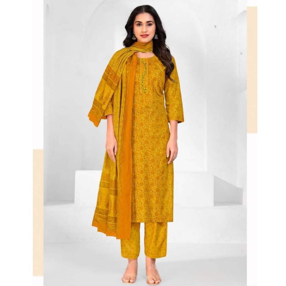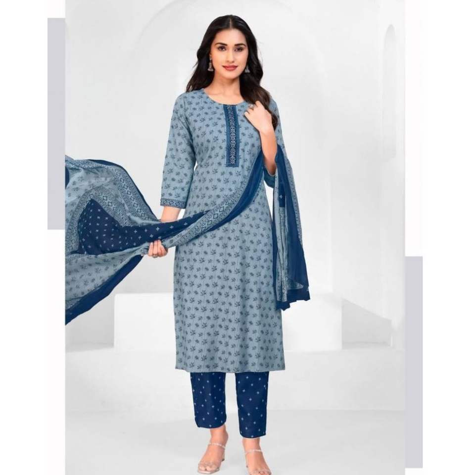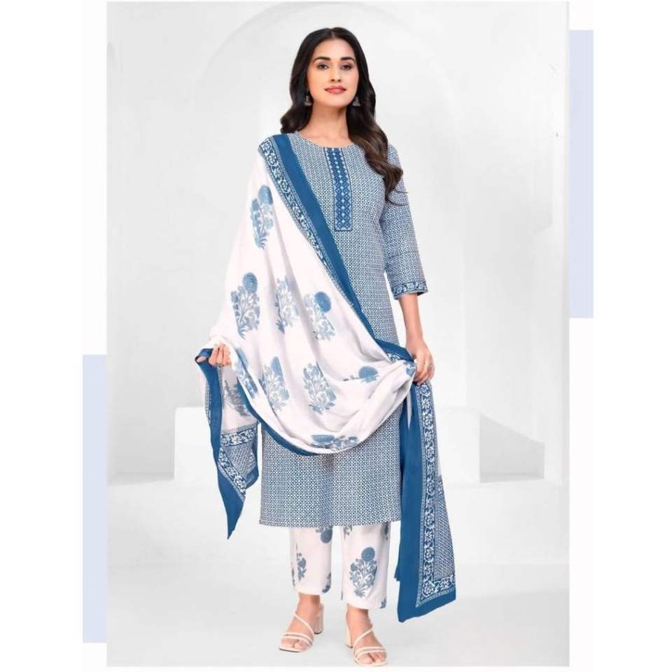 ชุดคุर्ติผู้หญิงสไตล์โมเดิร์นพร้อมลายปักที่คอ ผ้าฝ้ายแท้ พร้อมกางเกงผูกเอวและผ้าคลุมไหล่ สวมใส่สบาย เหมาะสำหรับงานปาร์ตี้ งานแต่งงาน และงานพิธีต่างๆ