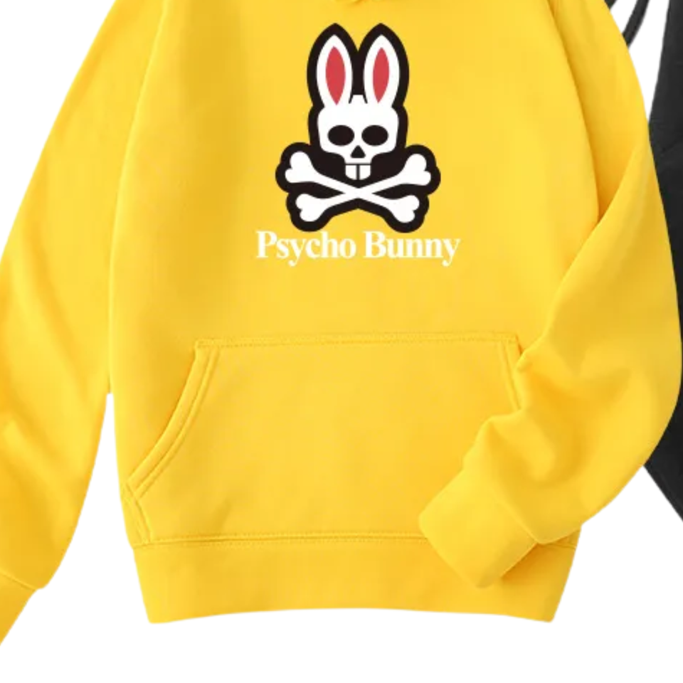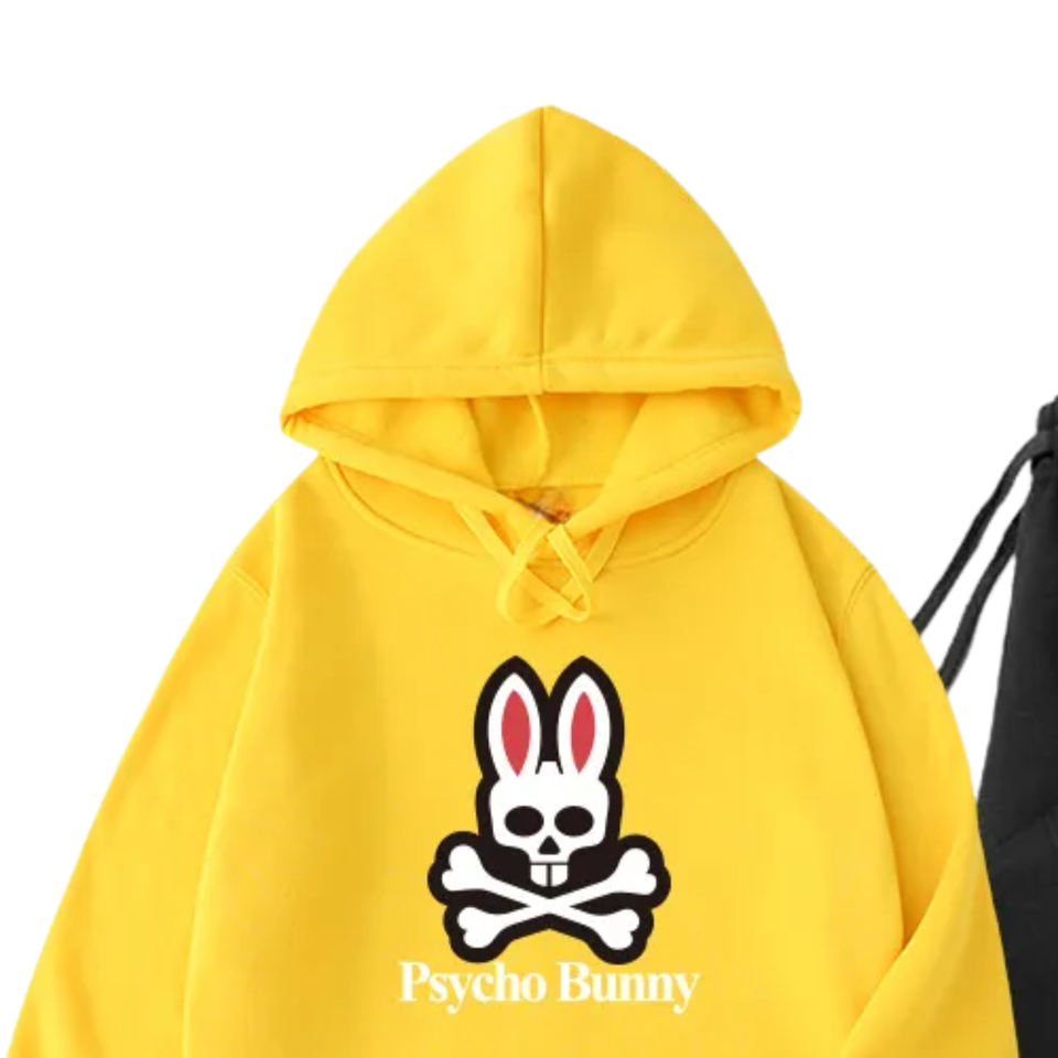 ชุดเซ็ตเสื้อฮู้ดดี้ลายกระต่ายสีเหลืองพิมพ์ลายกราฟิกกระต่ายหัวกะโหลก และกางเกงจ็อกเกอร์ ผ้าฝ้ายฟลีซ สำหรับฤดูหนาว สไตล์สตรีทแวร์ ขายดีที่สุด