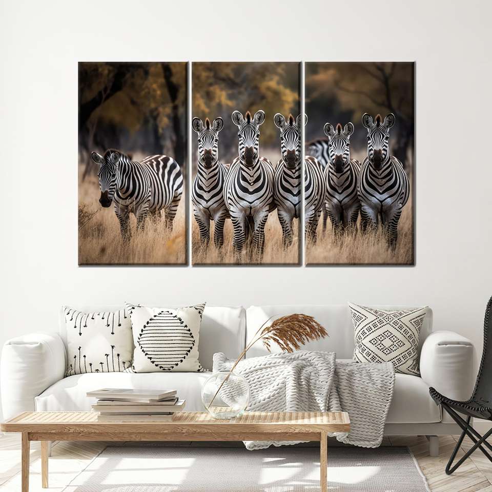 ผ้าใบพิมพ์ลายม้าลาย: โปสเตอร์สัตว์สุดหรูสำหรับตกแต่งบ้าน,3P: ห่อหุ้มอย่างดี