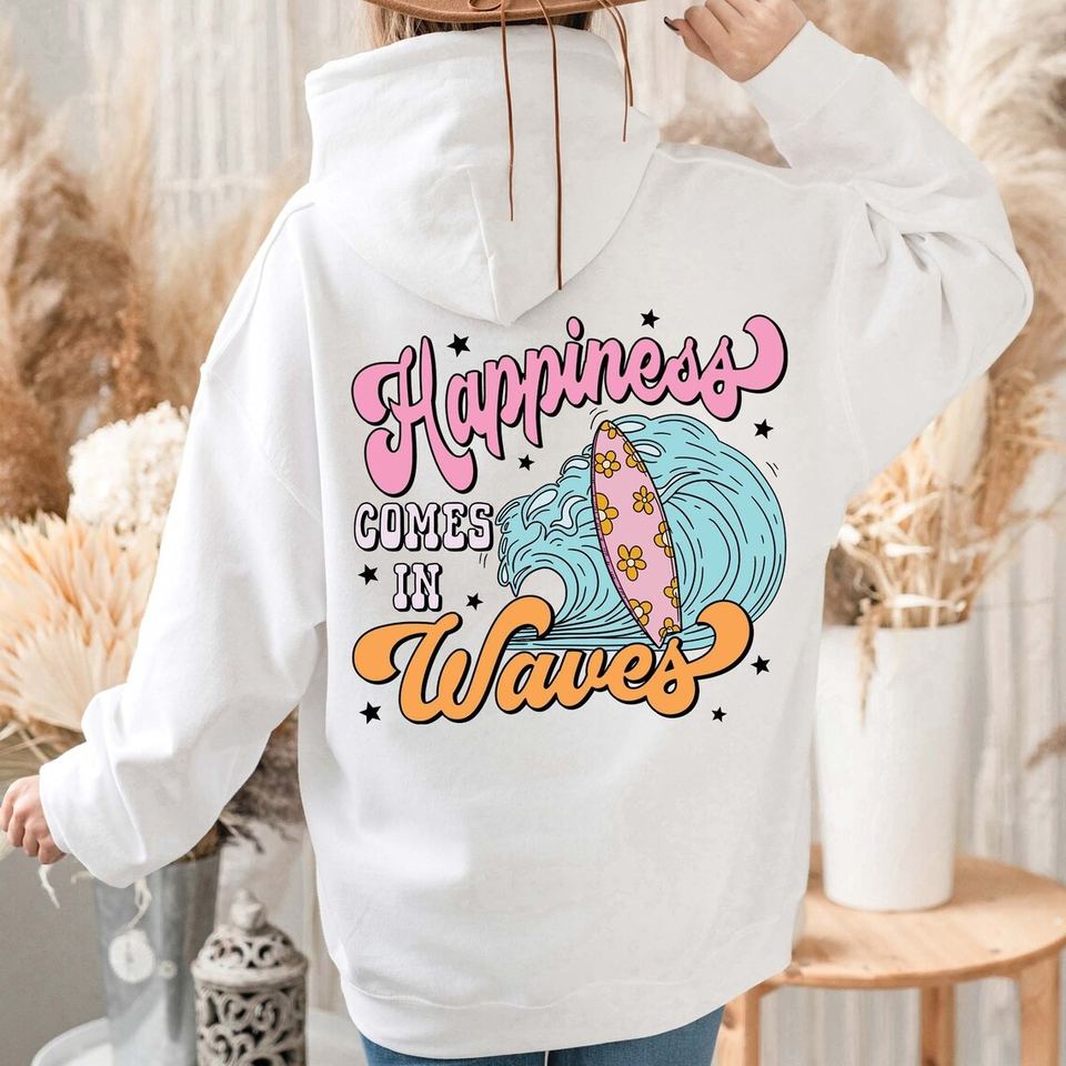 เสื้อฮู้ดดี้ลายฉลุแบบกำหนดเองของ Spiders Custom Denims พร้อมลายพิมพ์นูนแบบ Tears ผ้าฝ้ายฟลีซ 1:1 รุ่น Happiness Comes In Waves