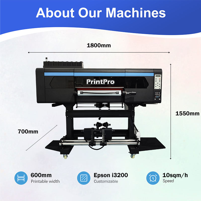 Printpro A3 Xp600สองหัวเครื่องพิมพ์ DTF ความแม่นยำสูงเครื่องพิมพ์ยูวีอเนกประสงค์สำหรับเครื่องพิมพ์หนัก