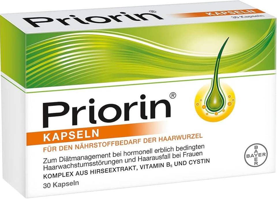 Priorin แคปซูลป้องกันผมร่วงและการเจริญเติบโตของเส้นผมจากมังสวิรัติ-สูตร2-in-1ผลิตในเยอรมนี