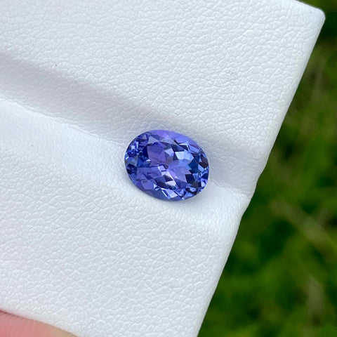 แทนซาไนต์สีน้ำเงินทรงปริซึม เกรด AA+ น้ำหนัก 2.10 กะรัต ทรงแฟนซีโอวัล 100% ธรรมชาติ อัญมณีกึ่งมีค่าประจำเดือนธันวาคม ขายส่ง