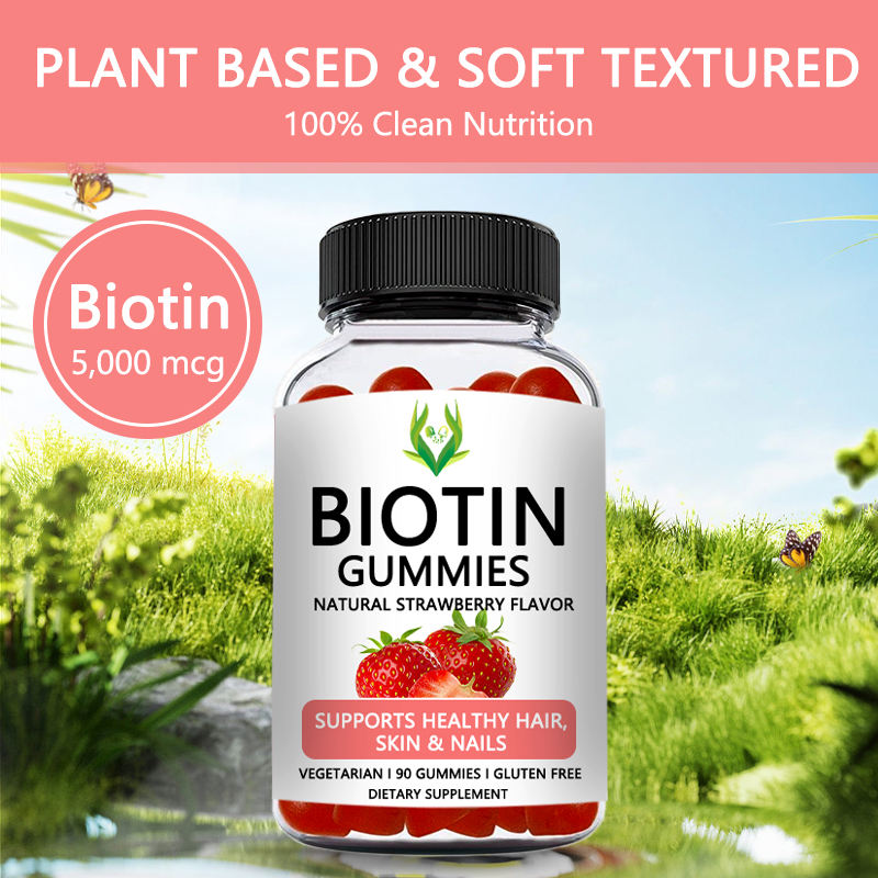 วิตามินกัมมี่ไบโอตินออร์แกนิค รสสตรอว์เบอร์รีธรรมชาติ บำรุงความงาม สำหรับคนทานมังสวิรัติ เพื่อสุขภาพผม ผิว เล็บ และเพิ่มพลังงาน