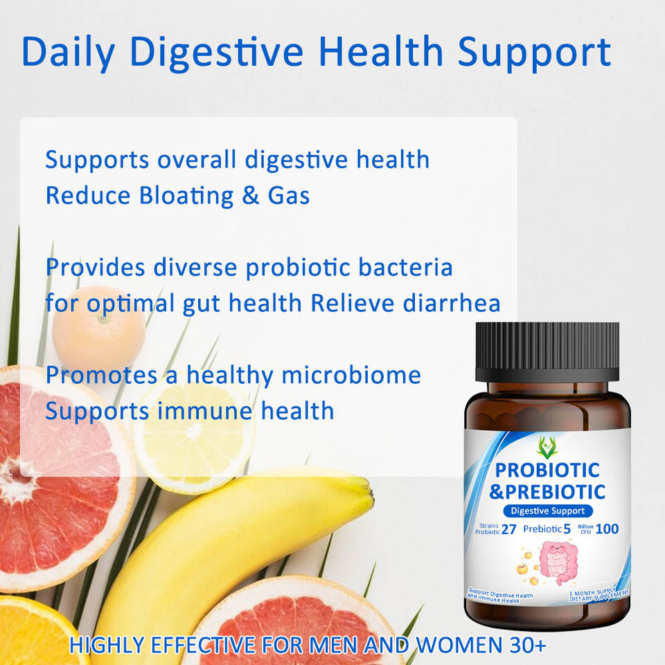 แคปซูลโปรไบโอติกติดฉลากส่วนตัวพร้อมอาหารเสริมพรีไบโอติกสำหรับปรับปรุงระบบย่อยอาหารและระบบภูมิคุ้มกันสำหรับผู้ใหญ่
