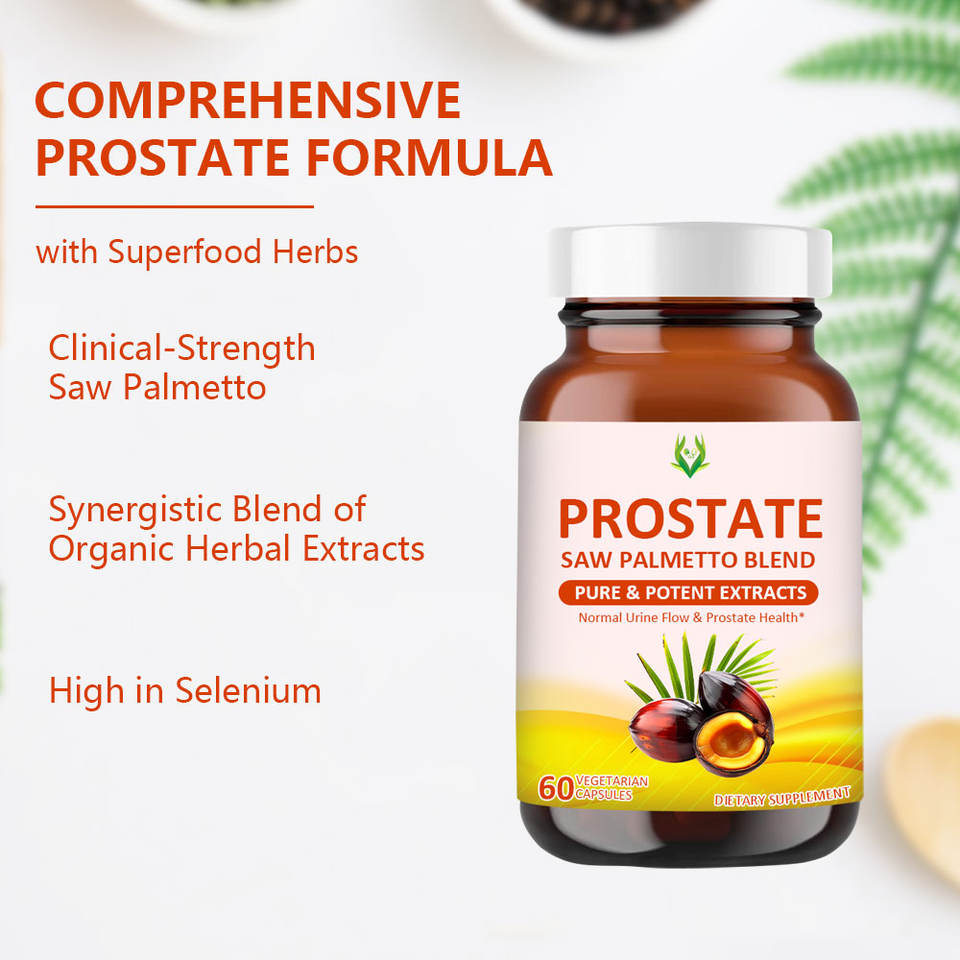เครื่องผลิตมะเร็งต่อมลูกหมากฉลากส่วนตัวพร้อมใบเลื่อย Palmetto ผสมผสานรองรับต่อมลูกหมากเพื่อสุขภาพและกระตุ้นการไหลเวียนของปัสสาวะสำหรับผู้ชาย