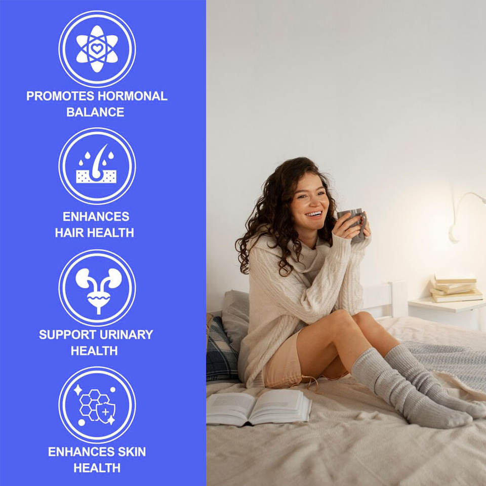 ฉลากส่วนตัวเห็นแคปซูล Palmetto ที่ซับซ้อนช่วยบำรุงเส้นผมให้แข็งแรงสนับสนุนการทำงานของต่อมลูกหมากและส่งเสริมความสมดุลของฮอร์โมน