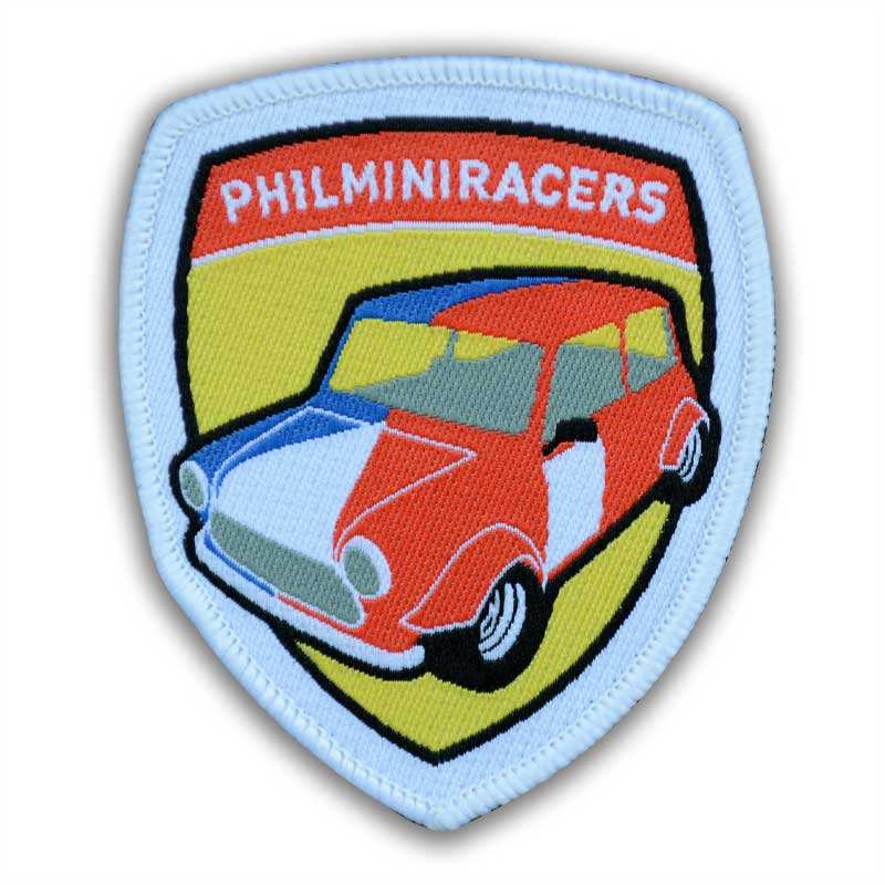 ป้ายติดขอบเสื้อแบบทอธงโลโก้แบรนด์ออกแบบได้ตามต้องการมีห่วงตรงกลางพับเหล็กด้านหลังได้