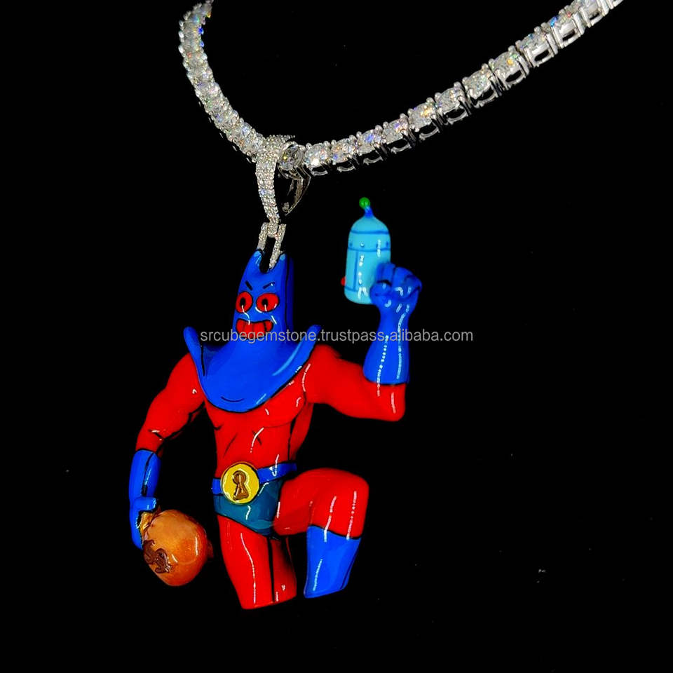 จี้เครื่องประดับฮิปฮอปแบบกำหนดเองส่วนตัวงานฝีมือรูปการ์ตูน3D งานหัตถกรรมเพชรทรงกลมจี้รูปตัวอักษรเพชรโมอิส