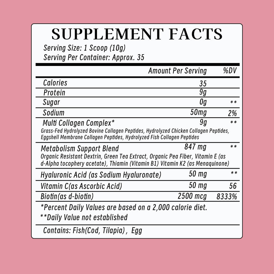 คอลลาเจนเปปไทด์, โปรตีน, ไบโอติน, โซเดียมส่วนผสมหลัก