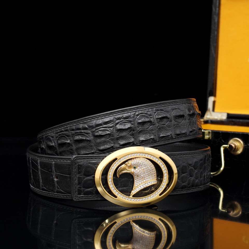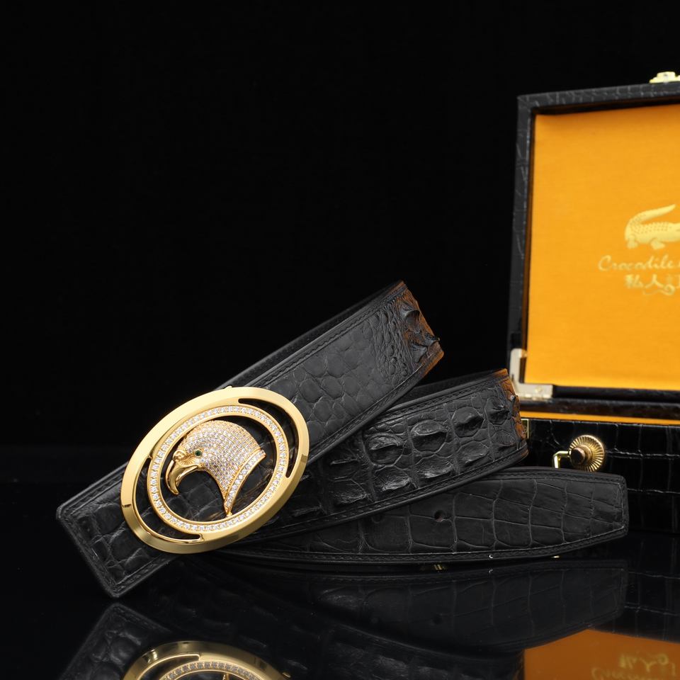 Private Customized Formal Crocodile Skin Men's Belt with Eagle Head Diamond Inlay Steel Buckle Lightweight & Breathable