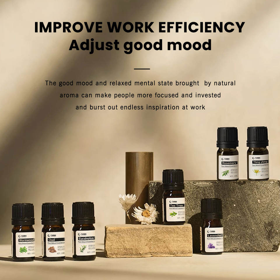 น้ำมันแพทชูลี่, น้ำมันเปปเปอร์มินต์, น้ำมันส้มหวาน, น้ำมันมะนาว, น้ำมันยูคาลิปตัส, น้ำมันสเปียร์มินต์, น้ำมันวินเทอร์กรีน, น้ำมันตะไคร้หอม, น้ำมันไธม์, น้ำมันอบเชย, น้ำมันโป๊ยกั๊ก, น้ำมันเปลือกส้ม, น้ำมันขิง, น้ำมันส้มแมนดาริน, น้ำมันลาเวนเดอร์, น้ำมันทีทรี, น้ำมันโรสแมรี่, น้ำมันไซเปรส, น้ำมันกานพลู, น้ำมันบอระเพ็ด, น้ำมันยูคาลิปตัสผสมเลมอน, น้ำมันออริกาโน, น้ำมันใบงาขี้ม้อน, น้ำมันหอมระเหยไม้จันทน์, น้ำมันเสจ, น้ำมันซีดาร์, น้ำมันตะไคร้, น้ำมันหญ้าฝรั่น, น้ำมันหอมระเหยเบอร์กาม็อท, น้ำมันเจอเรเนียม, น้ำมันกุหลาบ, น้ำมันกำยาน, น้ำมันดอกเบญจมาศ, น้ำมันวานิลลา, น้ำมันกฤษณา, น้ำมันดาวเรือง, น้ำมันมะลิ, น้ำมันลอเรล, น้ำมันคาโมมายล์, น้ำมันเนโรลี