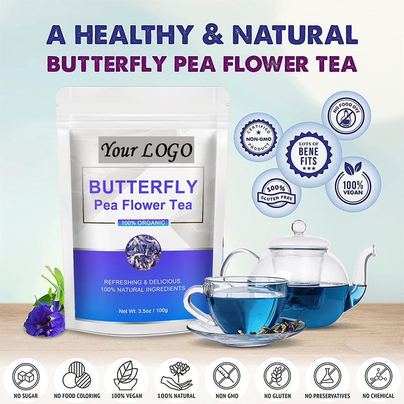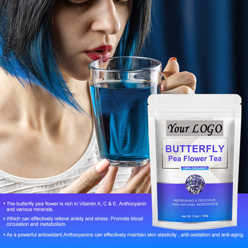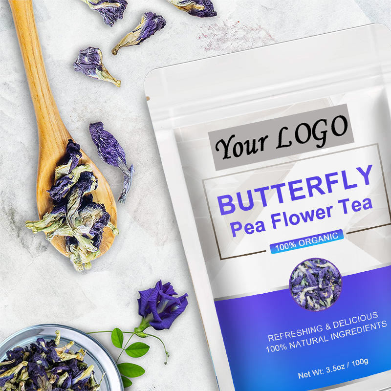 ชาสมุนไพรธรรมชาติ100% 100ก. แห้งชาถั่วลันเตาดอกไม้ผีเสื้อสำหรับผิวฉลากตามต้องการ