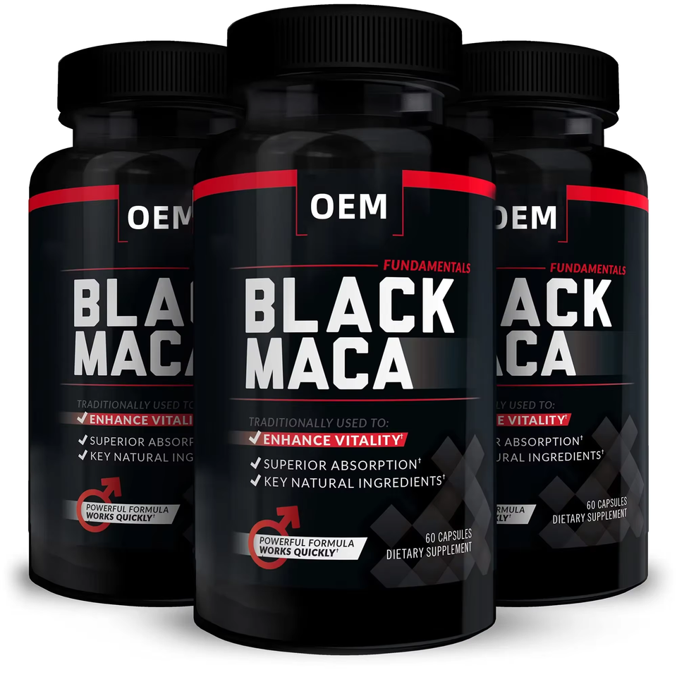 แคปซูลมาคาสีดำบริสุทธิ์ 100% แบรนด์ส่วนตัว 500 มก. มาคาสีดำเกรดอาหาร 90 แคปซูล เพื่อพลังงาน ความแข็งแกร่ง ความอดทน และประสิทธิภาพ