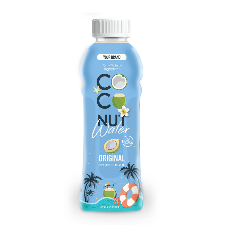 ขวดน้ำมะพร้าวบริสุทธิ์100% 500มล. ขวดน้ำ PET บรรจุน้ำผักและผลไม้ฉลากส่วนตัว