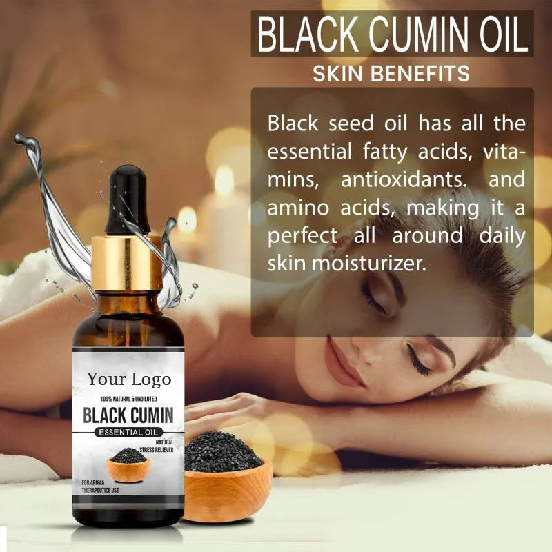น้ำมันหอมระเหยไนเจลลา sativa น้ำมันเมล็ดยี่หร่าสีดำอัดแน่นไปด้วยวิตามินเกรดสูง100% ติดฉลากส่วนตัว