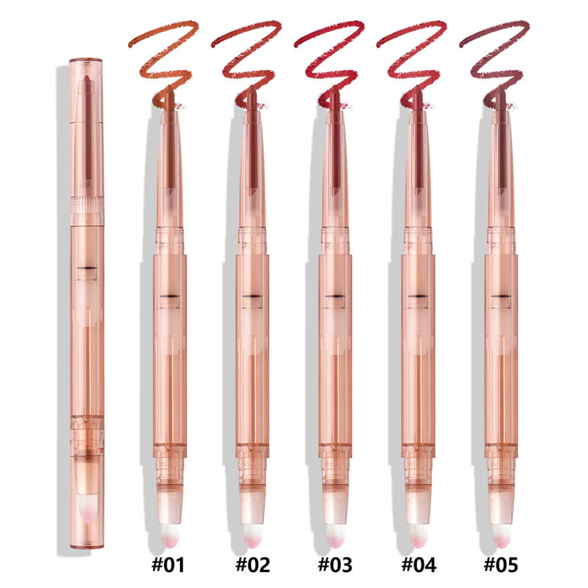 ดินสอเขียนขอบปาก 2 in 1 พร้อมแปรง ติดทนนาน กันน้ำ เนื้อแมทท์ เรียบเนียน มี 5 สีให้เลือก