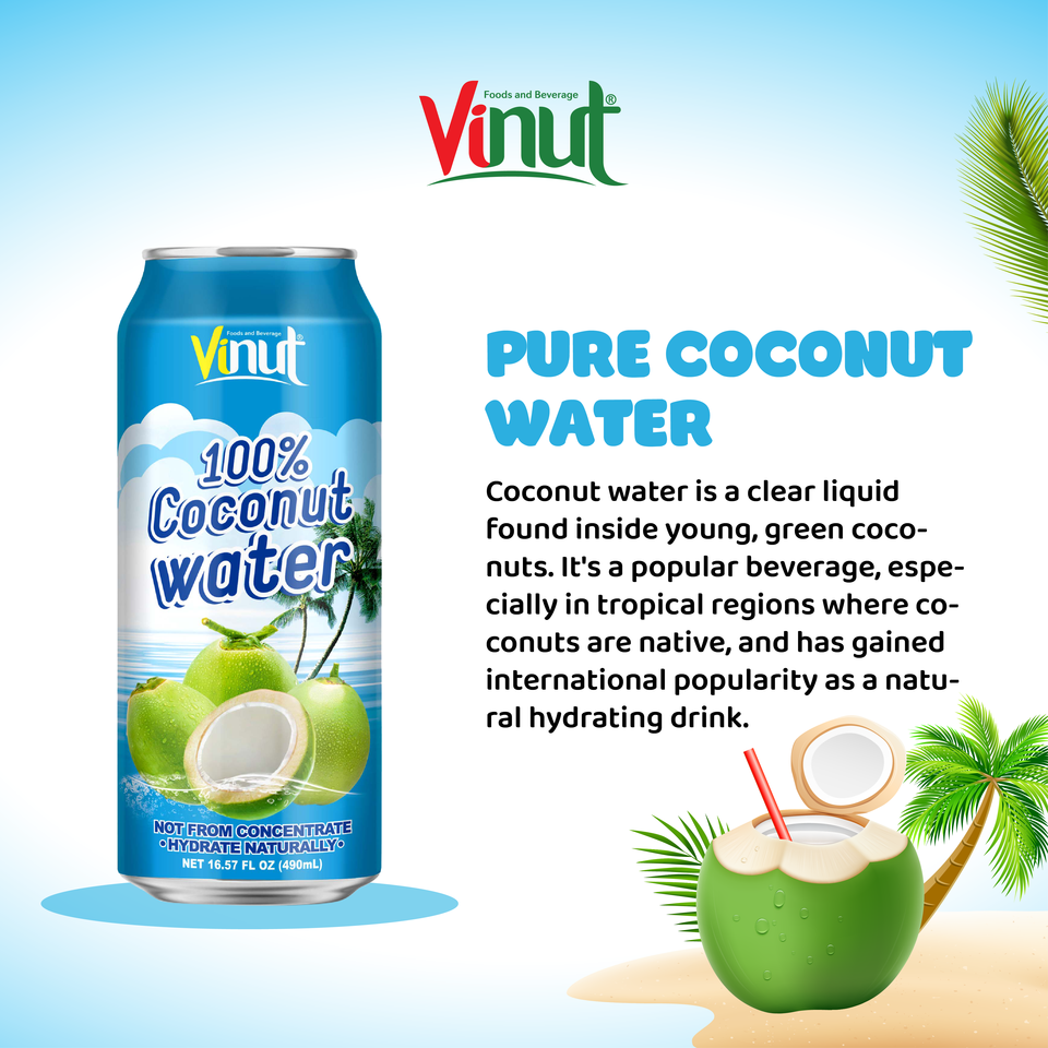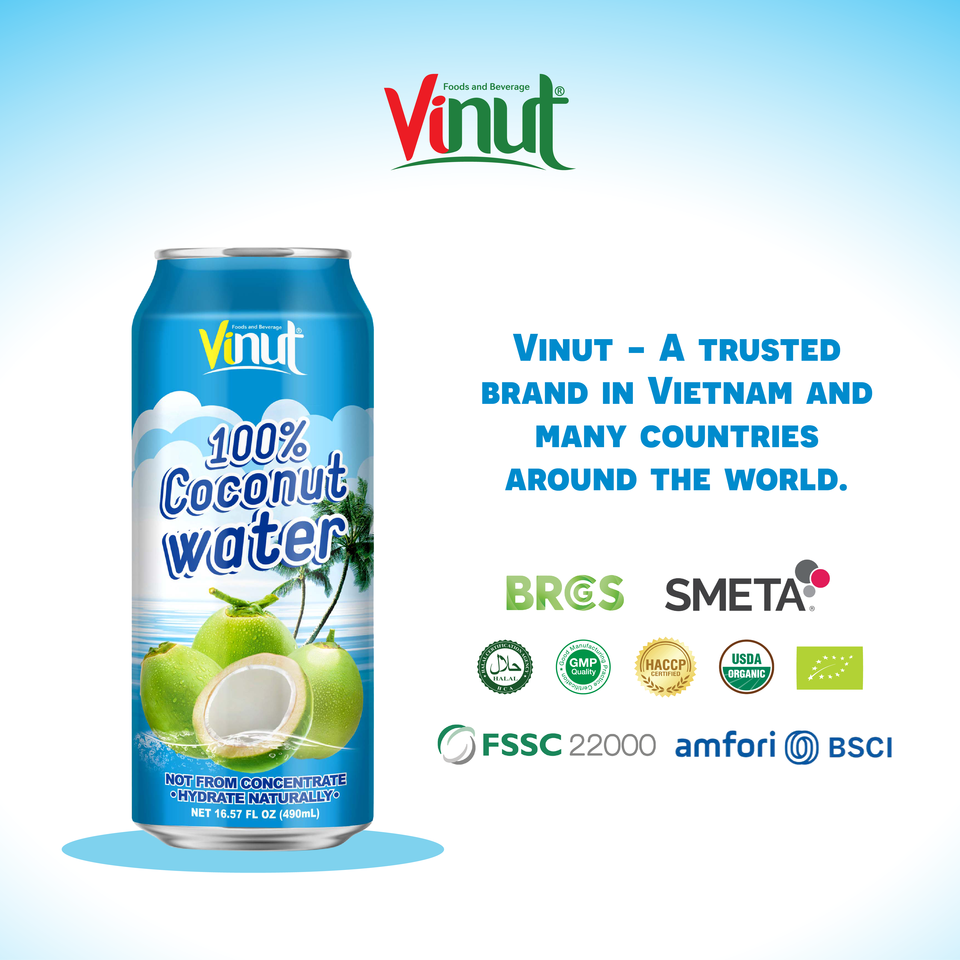 น้ำมะพร้าวสด 490 มล. 100% บริสุทธิ์ รสชาติเข้มข้น คั้นสด บรรจุกระป๋อง ผลิตจากโรงงานในเวียดนาม รับผลิตแบบ OEM ODM ฟรี