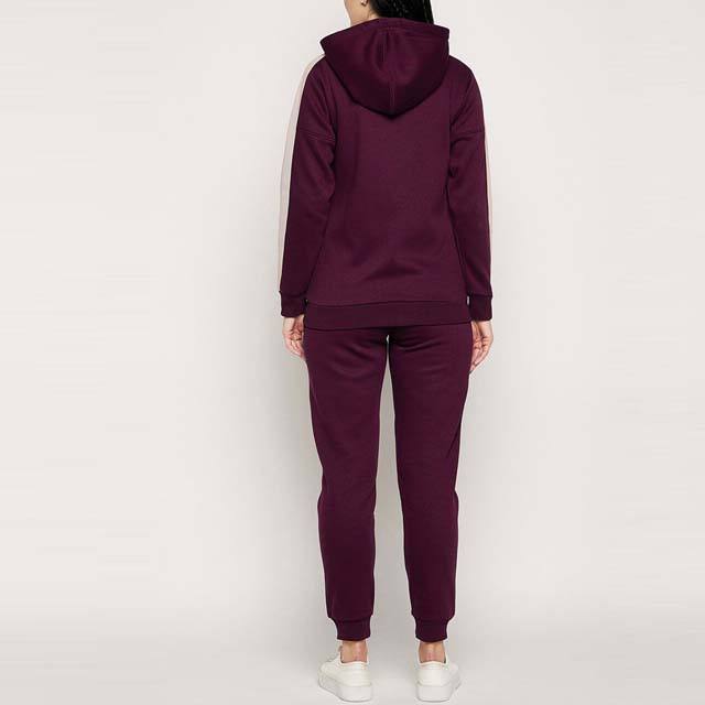 ชุดวอร์มผู้หญิงผ้าฝ้ายแท้ 100% แบรนด์ส่วนตัว พิมพ์ลายสำหรับฤดูหนาว สีเบอร์กันดี เสื้อฮู้ดซิปเต็มตัว กางเกงจ็อกเกอร์ขายาว