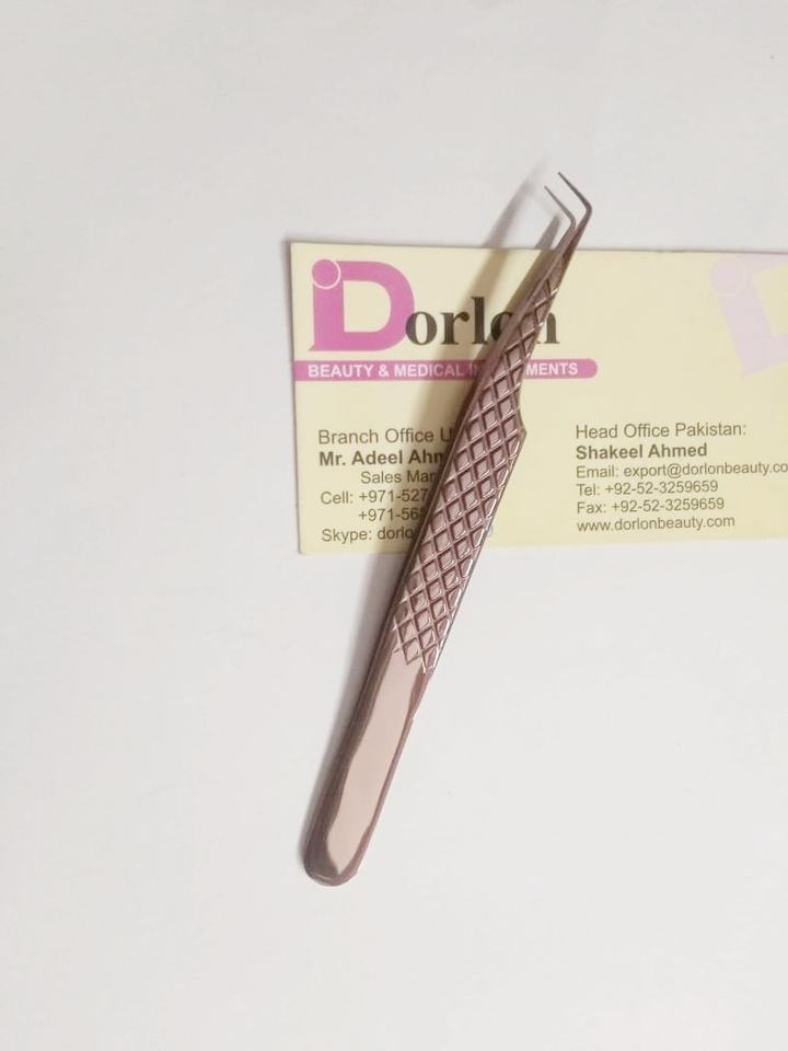 ชื่อผลิตภัณฑ์:ที่หนีบขนตามุม90องศาสีโรสโกลด์สำหรับมืออาชีพด้ามจับเพชร