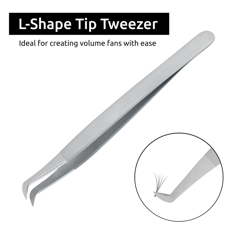 แหนบปลายสแตนเลส90องศาสำหรับต่อขนตาเพิ่มวอลลุ่มสีชมพู