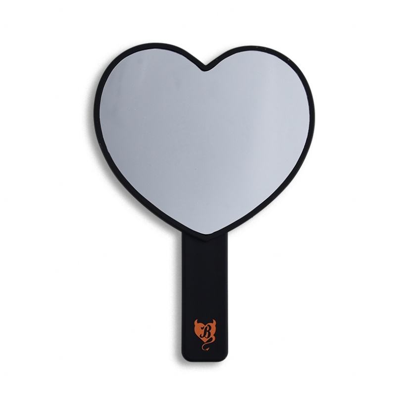 กระจกพกพาแบบมือถือรูปหัวใจน่ารัก สีดำ ABS สำหรับเดินทาง แบรนด์ส่วนตัว