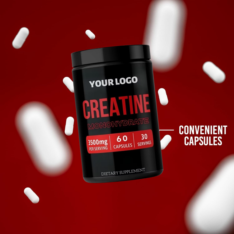 แคปซูลโมโนไฮเดรตขนาดเล็ก5000มก. สำหรับผู้ใหญ่โปรตีนโภชนาการทางกีฬาฉลากส่วนตัว