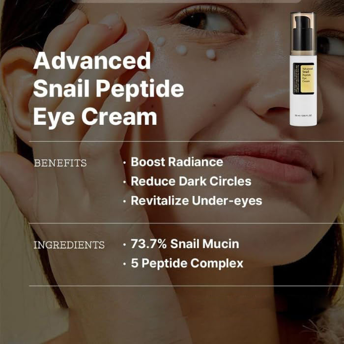 ครีมบำรุงรอบดวงตาสูตรลดเลือนริ้วรอยและจุดด่างดำ ผสมสารสกัดจากเมือกหอยทาก 92% คอลลาเจน เรตินอล และเปปไทด์ ช่วยให้ผิวเรียบเนียน