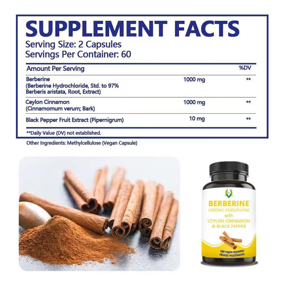 แคปซูลสารสกัดเบอร์เบอรีน เอชซีแอล แบรนด์ส่วนตัว สารสกัดอบเชยซีลอนและพริกไทยดำ เพื่อเสริมสร้างภูมิคุ้มกัน ยาเม็ดเบอร์เบอรีน