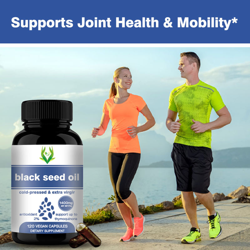 แคปซูลน้ำมันเมล็ดสีดำ1400มก. สกัดเย็นและสารต้านอนุมูลอิสระบริสุทธิ์พิเศษสนับสนุนข้อต่อเพื่อสุขภาพโอเมก้า6 9