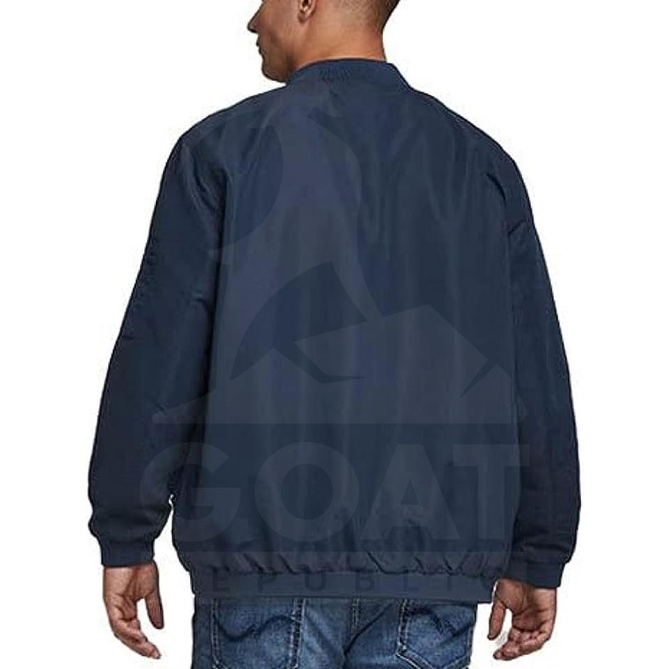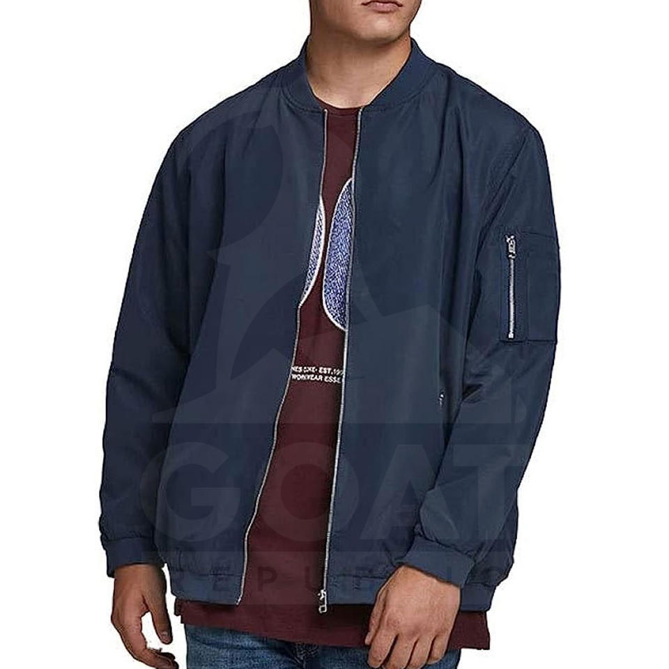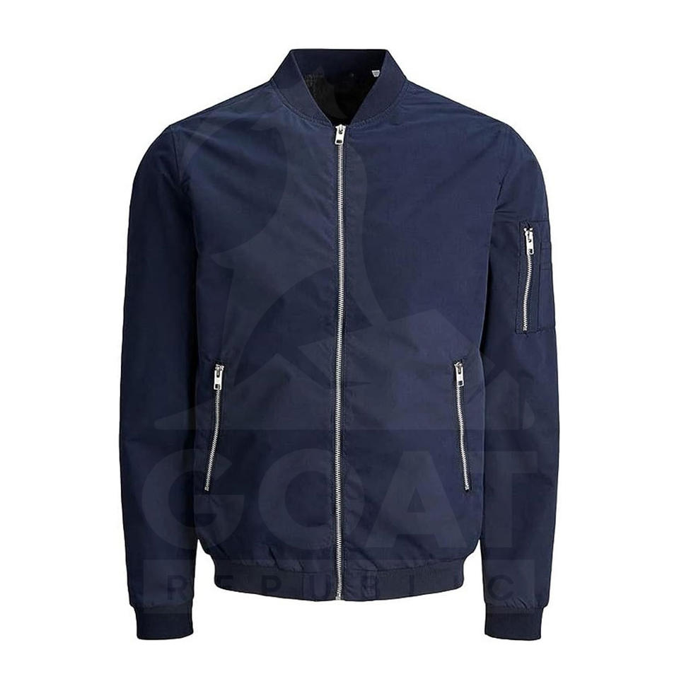 เสื้อแจ็คเก็ตบอมเบอร์ผ้าแคนวาสคอตั้งสำหรับผู้ชาย ระบายอากาศได้ดี แบรนด์ส่วนตัว พร้อมโลโก้ด้านหน้า ปรับแต่งได้ ใช้กลางแจ้ง ผลิตในปากีสถาน