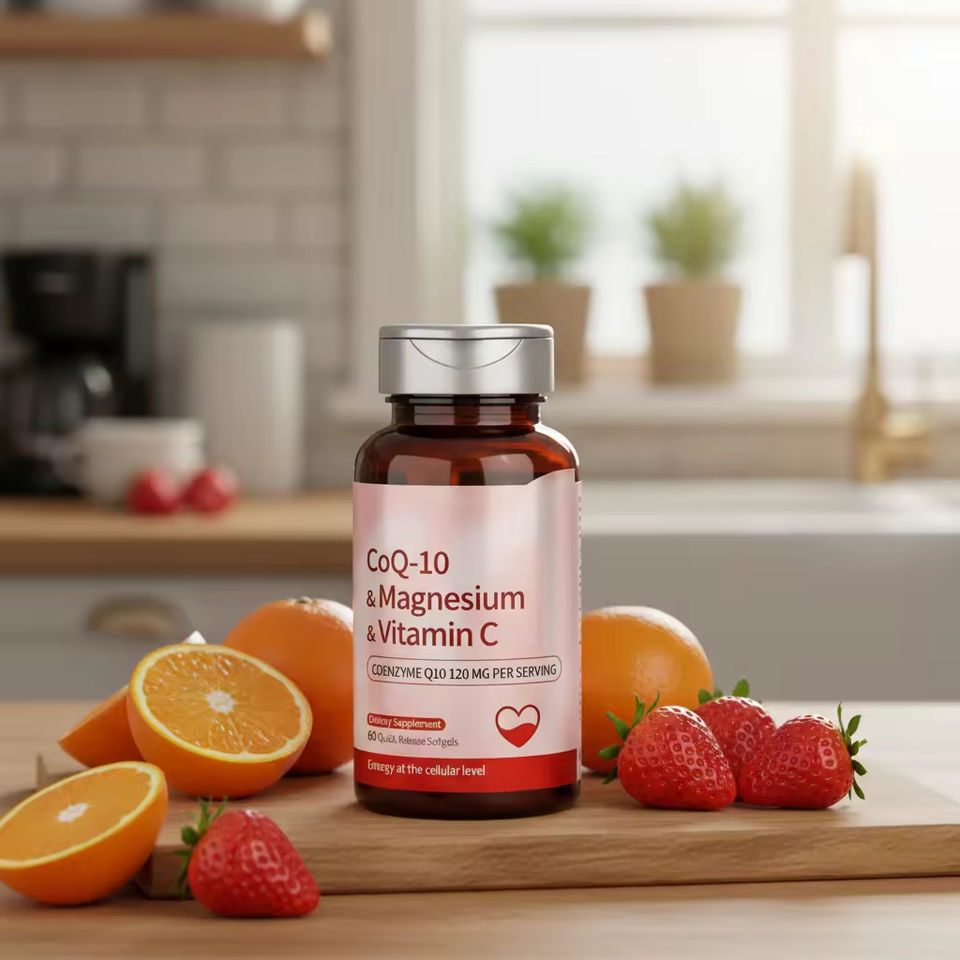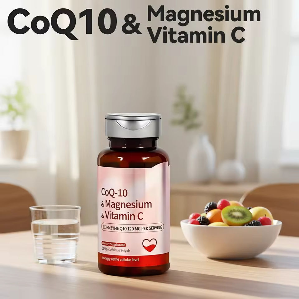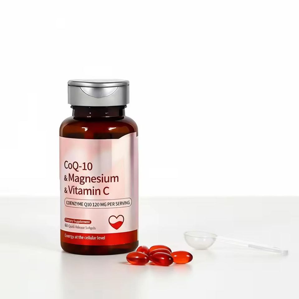 อาหารเสริมโคเอนไซม์คิวเท็น แมกนีเซียม วิตามินซี แบบแคปซูลนิ่ม สำหรับผู้ใหญ่ ช่วยบำรุงหัวใจ ต้านอนุมูลอิสระ (ฉลากสินค้าสั่งผลิต)