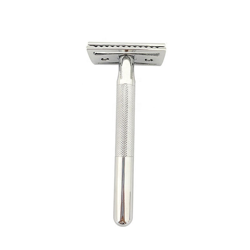 มีดโกนสำหรับผู้ชายมีดโกนโลหะแบบคลาสสิกมีดโกนหนวดแบบสองขอบมีดโกนหนวดปลอดภัยด้ามจับยาวทำจากทองเหลืองใช้ซ้ำได้ฉลากตามต้องการ