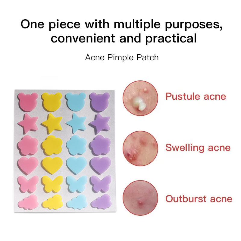 แผ่นแปะสิวสีสันสดใสยี่ห้อไพรเวทเลเบล ผสมว่านหางจระเข้ คอลลาเจน วิตามินซี บำรุงผิว กันน้ำ ไฮโดรคอลลอยด์