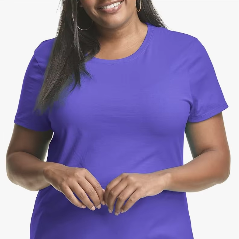 เสื้อยืดคอกลมแขนสั้นไซส์ใหญ่สำหรับผู้หญิง แบรนด์ส่วนตัว รับทำโลโก้ ผลิตจากโรงงานบังกลาเทศ ขายส่ง สินค้ามาใหม่ ผ้าฝ้าย