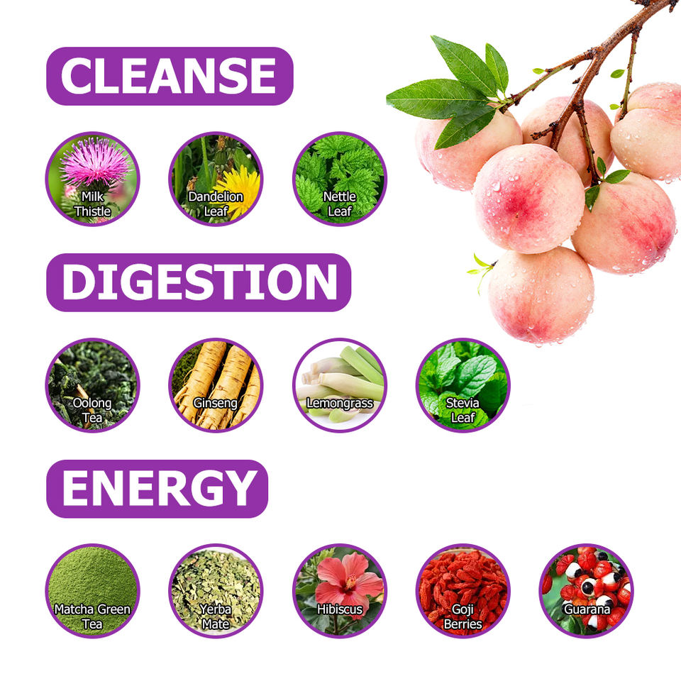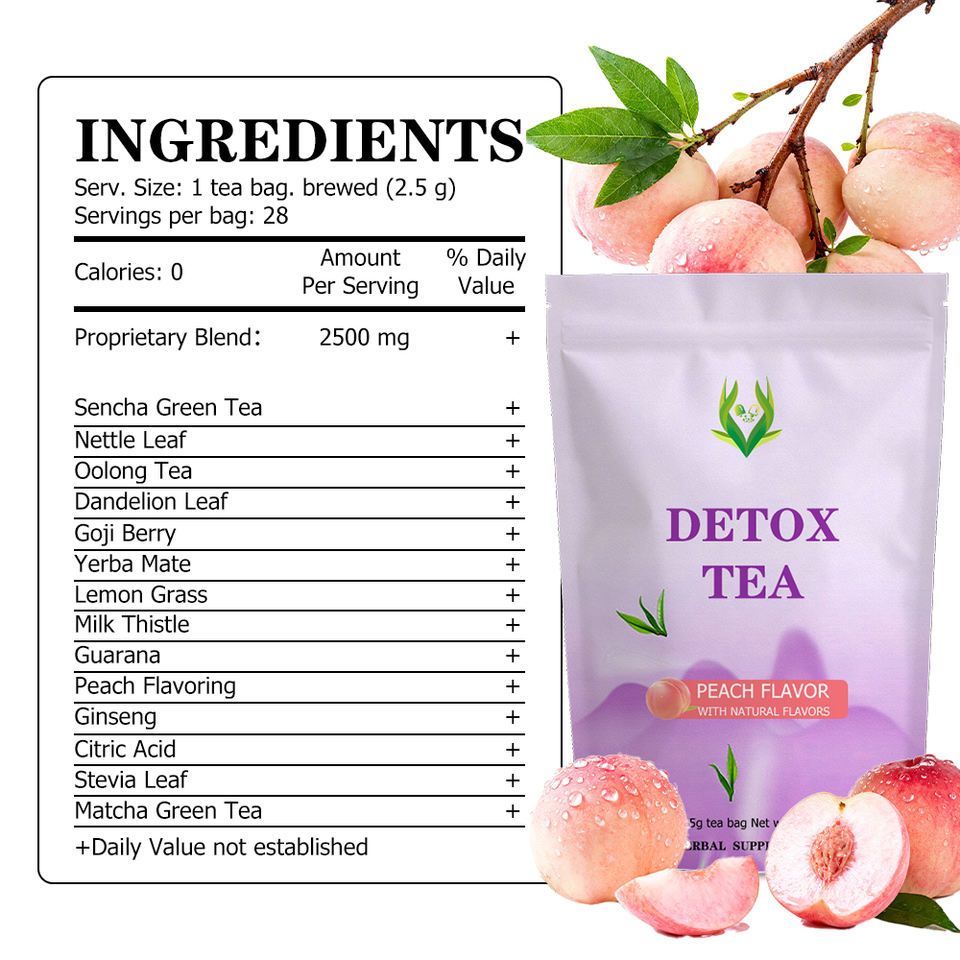ชาดีท็อกซ์สูตรเฉพาะสำหรับแบรนด์ส่วนตัว (OEM) รสพีชธรรมชาติ ผลิตภัณฑ์เสริมอาหารสมุนไพร ช่วยปรับสมดุลการย่อยอาหารด้วยชาอู่หลง