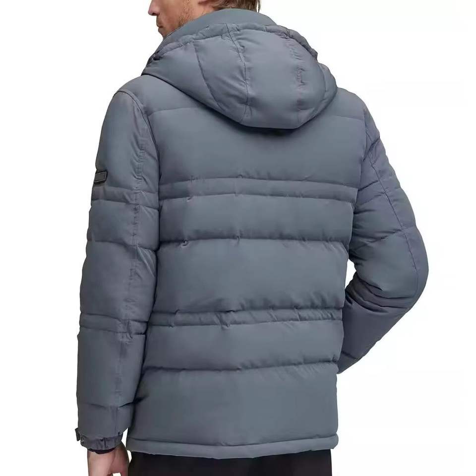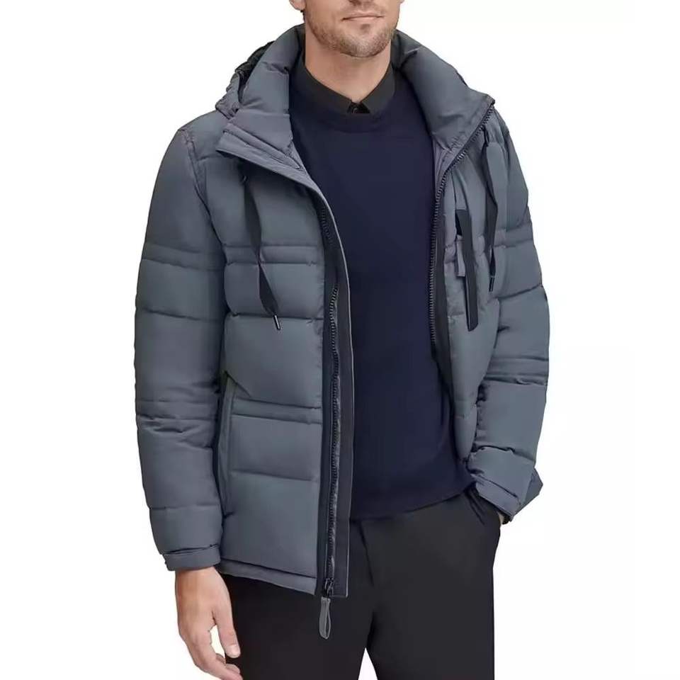เสื้อแจ็คเก็ตพัฟเฟอร์ผู้ชายสำหรับฤดูหนาว ผ้าแคนวาสระบายอากาศ ปักโลโก้ด้านหน้าตามสั่ง แบรนด์ส่วนตัว