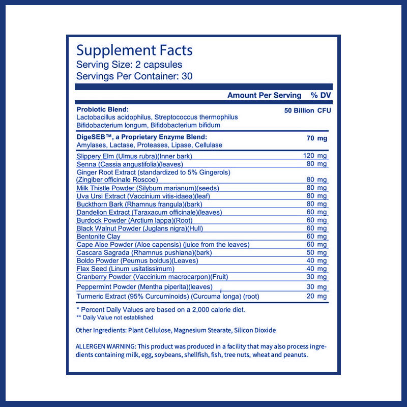 ส่วนผสมหลัก:การผสมผสานโปรไบโอติก, ดิเจเซ็ปเอนไซม์ผสม, ลื่น, เซนนา, สารสกัดจากรากขิง, นมผง