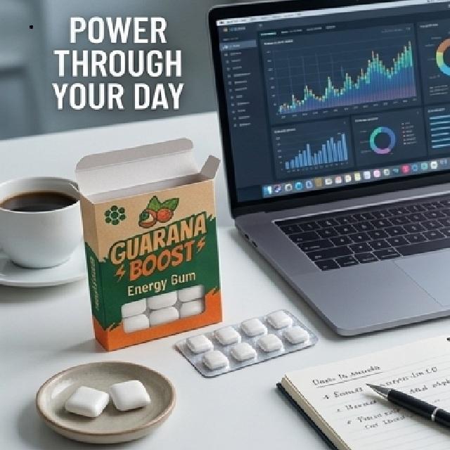 หมากฝรั่งพลังงานที่มีคาเฟอีน L-theanine โสมและวิตามิน b/d Complex ฉลากส่วนตัว