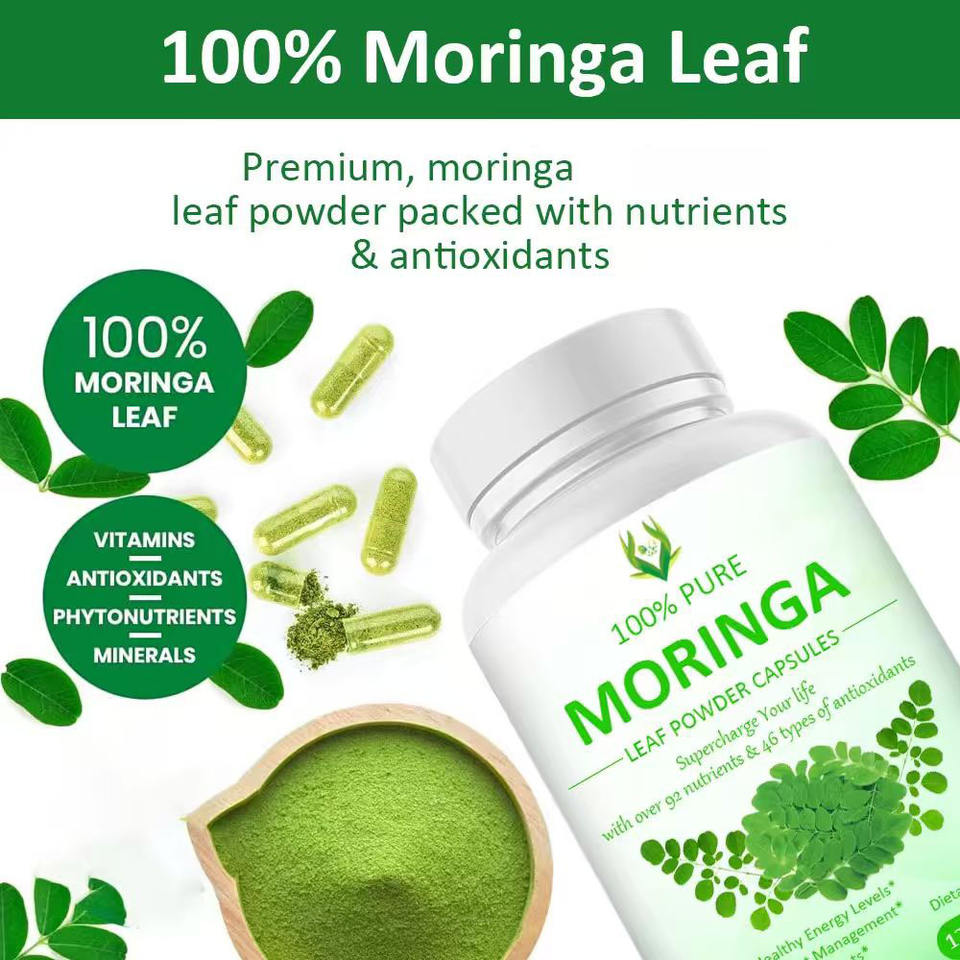 โรงงานผลิตภัณฑ์ฉลากส่วนตัว จัดหาแคปซูลมอรินก้าธรรมชาติ 100% คุณภาพสูง ผงมอรินก้าแบบแคปซูล บรรจุภัณฑ์ขนาดใหญ่