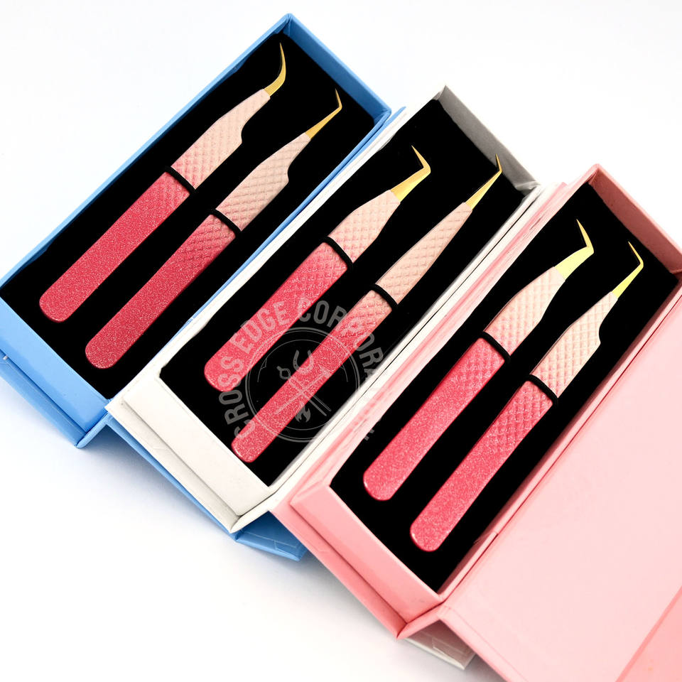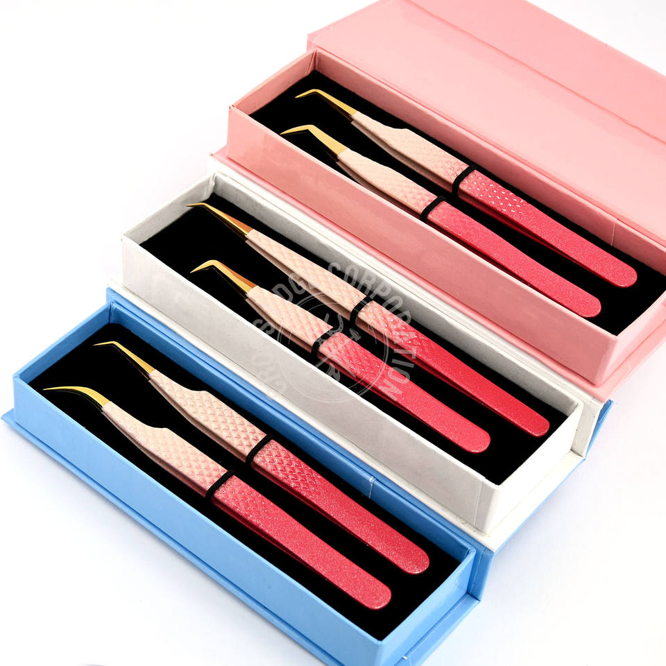 Private Label Fiber Tips Lash Extension Tweezers Diamond Grip Curved Volume Fiber Tip Eyelash Tweezers Professional