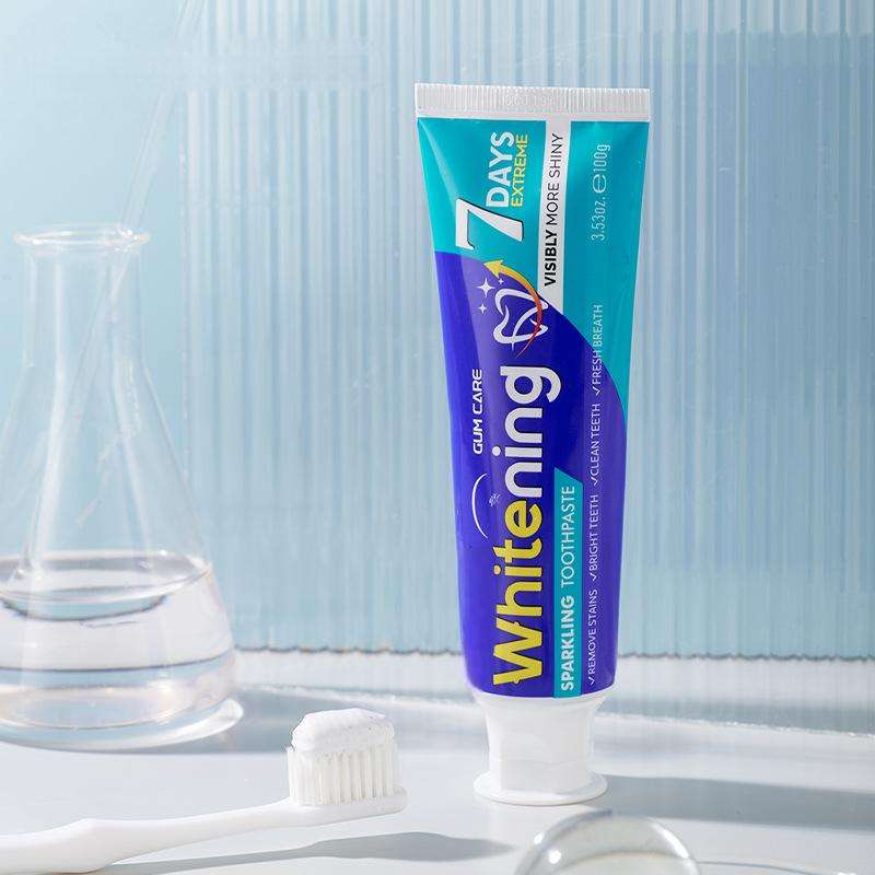 ยาสีฟันไวท์เทนนิ่งกลิสเตอร์ กลิ่นมิ้นท์สดชื่น สูตรไวท์เทนนิ่งเข้มข้น 7 วัน ขจัดคราบอย่างล้ำลึก สำหรับฟันที่บอบบาง