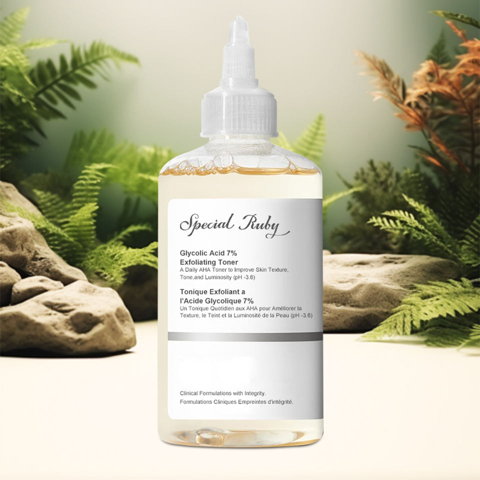 โทนเนอร์หน้าไพรเวทเลเบล กรดไกลโคลิก 7% ผสมไฮยาลูรอนิค แอซิด ออร์แกนิค ช่วยปรับสภาพผิวให้กระจ่างใส ลดเลือนริ้วรอย ผลัดเซลล์ผิว และเพิ่มความชุ่มชื้น