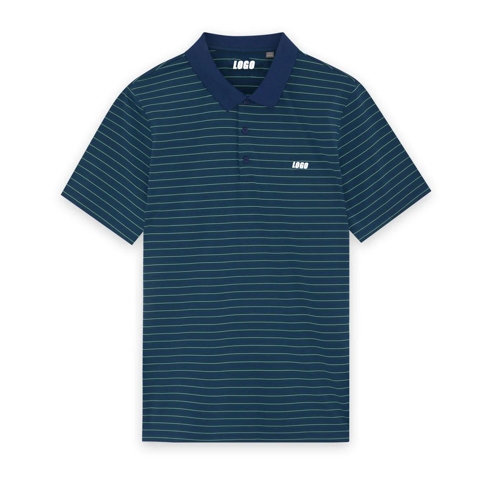 เสื้อโปโลลายทางกอล์ฟแบรนด์ส่วนตัว สีฟ้าอมเขียว สำหรับผู้ชาย ระบายอากาศได้ดี ยืดหยุ่น กระชับพอดีตัว สวมใส่สบาย แบบลำลอง ผลิตตามสั่ง