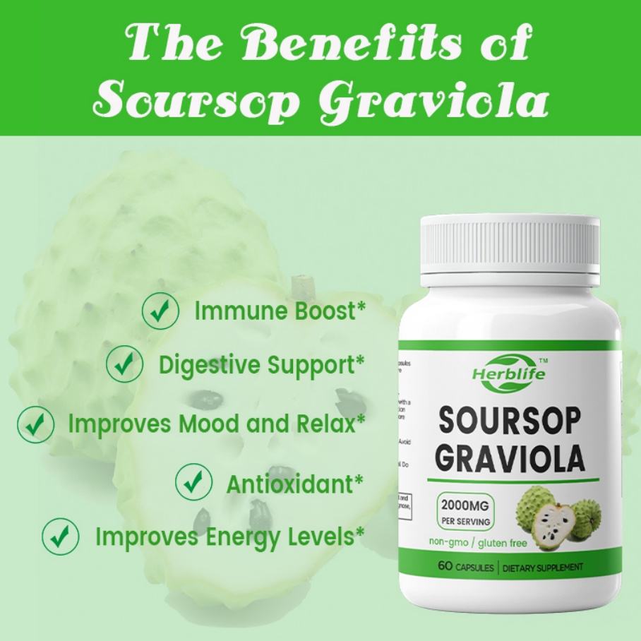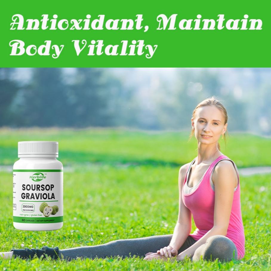 แคปซูล Graviola Soursop ฉลากส่วนตัวอาหารเสริมทุเรียนเทศอินทรีย์ใบแคปซูลสำหรับการสนับสนุนภูมิคุ้มกันและการสนับสนุนสารต้านอนุมูลอิสระ